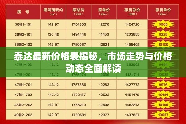随着全球经济的不断发展和市场的日益繁荣,泰达作为一个重要的经济和商业领域,其价格动态一直备受关注,本文将围绕“泰达今日价格表最新”这一主题,为您全面解读市场走势与价格动态。